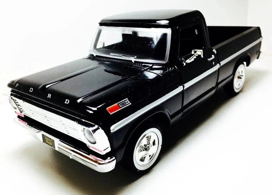 SKU: MX79315 | Brand: Motormax | Product: Motormax 1/24 1969 Ford F-100 Pickup Motormax 1/24 scale diecast model of the 1969 Ford F-100 Pickup truck. This vintage truck is rendered with realistic proportions and available in assorted colors, suitable for display and collection purposes.