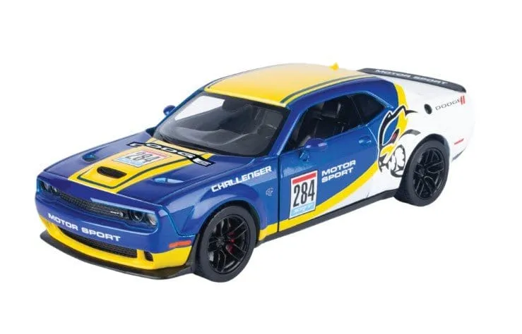 SKU: MX73792 | Brand: Motormax | Product: Motormax 1/24 GT Racing - 2018 Dodge Challenger SRT Hellcat Widebody Diecast Car The Motor Max 1/24 GT Racing 2018 Dodge Challenger SRT Hellcat Widebody Diecast Model is officially licensed and supplied in assorted colors. This 1:24 scale model combines die-cast metal with plastic components to capture the aggressive Widebody styling. Rugged construction makes it suitable for both interior display and outdoor play.