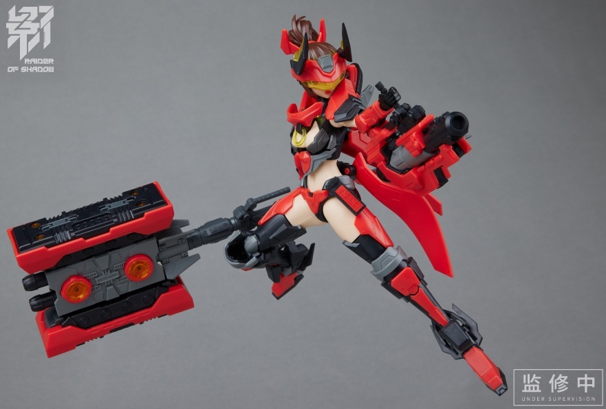 From Ms General, here's a new plastic model kit lineup called "Raider of Shadow", and the first member to join the Blacksmith "Ox Cow"! Her workbench can be transformed in a massive hammer! Order her for your collection today!