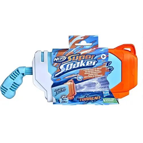 The Torrent is great way for everyone to get outside, get active, and get soaked! Tank capacity is 8 fluid ounces (236 milliliters). The Nerf Super Soaker brand has been pouring on the fun since 1989 and continues to drench everyone with water-blasting mayhem! Head outdoors for extreme soakage with Nerf Super Soaker blasters! Nerf Super Soaker and all related properties are trademarks of Hasbro.