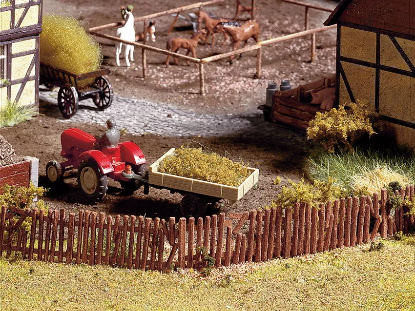 Painted Fences With various replicas of wooden and metal fences, you’ll find we have a nice selection of handpainted fences. Thanks to elaborate handpainting, the models look like the original down to the last detail! In addition, individual elements can be combined in multiple ways. This enables you to implement a wide variety of fence shapes, which fit your customised model landscape perfectly. Depending on the type of fence, straight pieces, garden gates, entrances, dilapidated fence sections and much more are included. Emphasise small, special details in your model landscape with the "Abandoned Fence".
