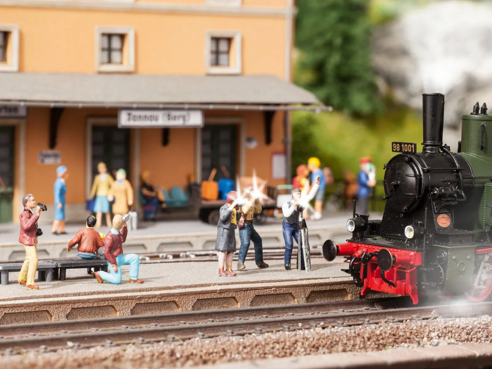 Photographers with cameras Our “Photographers” figure set in H0 gauge (1:87) brings life and dynamism to your model landscape. The set contains six detailed and hand-painted figures: five standing and one kneeling photographer, all with different poses and outfits. Whether the photographer in the red sweater looking for a motif or the event photographer with tripod - these characters capture every special moment. Ideal for realistically depicting scenes on your model railway layout or in dioramas. Let your creativity run wild and enrich your scenery with these unique figures!