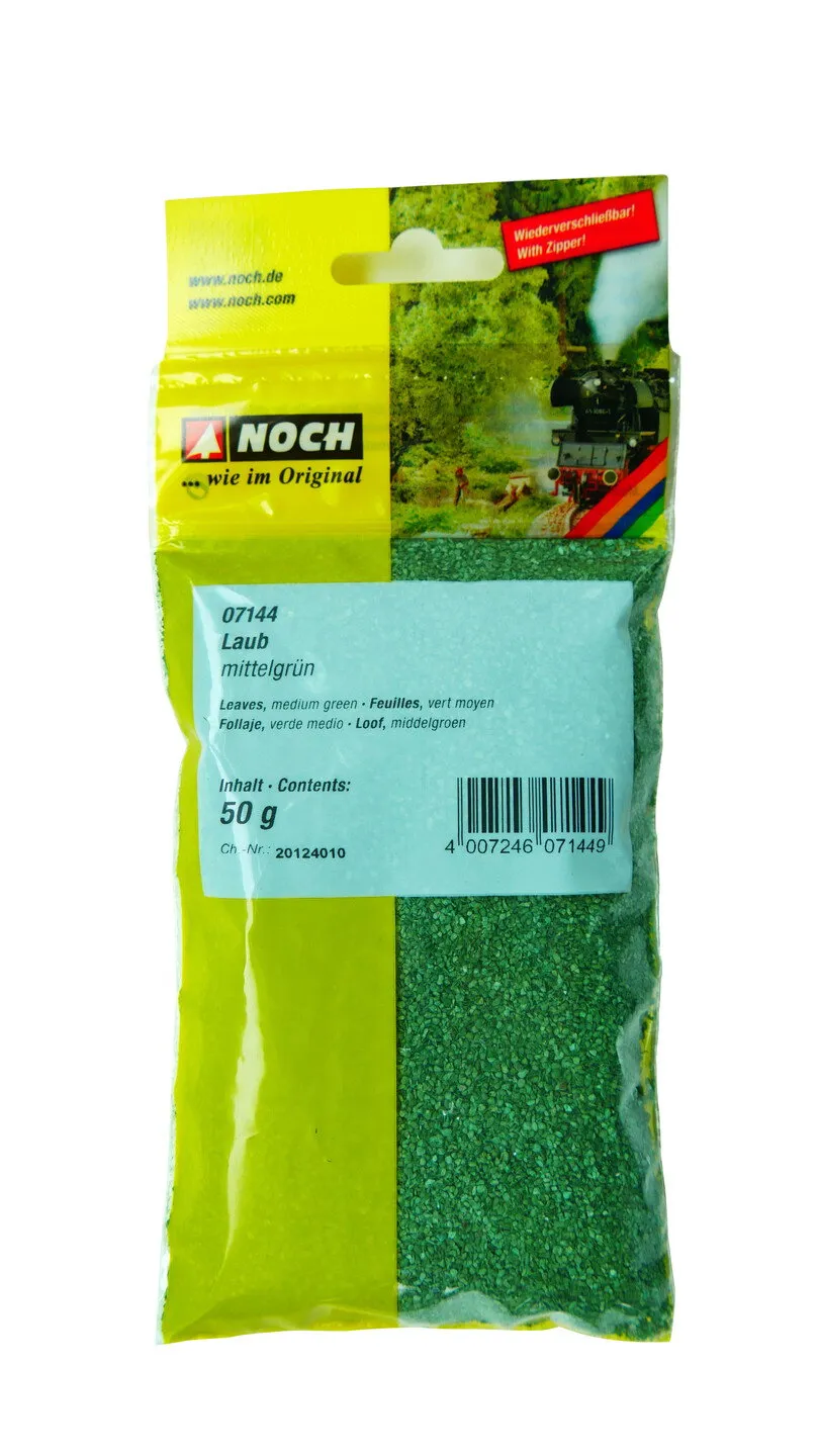 Leafing trees and bushes has never been so easy! The NOCH “Leaves” in medium green (item no. 07144) is perfect for creating realistic model trees, bushes and forest floors. The fine structure and natural coloring give your model landscape an authentic look and ensure lively vegetation. Whether as dense foliage for trees, ground cover or to create ivy - the versatile scattering material is easy to use. Apply adhesive to the desired area, scatter the foliage evenly over it and allow it to dry. After fixing, your landscape will look fresh and realistic in summer.