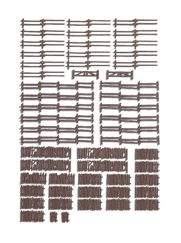 Fences Budget Sets The populat NOCH fences are also available uncoloured in a favourable budget packing. Every set contains fences with a total length of more than 250 cm (on the TT scale more than 200 cm and more than 150 cm on the N scale). It has never been so favorable to decorate your model landscape with model fences. Contents: Packaging Unit: 1 Set Length: 1700.00 mm
