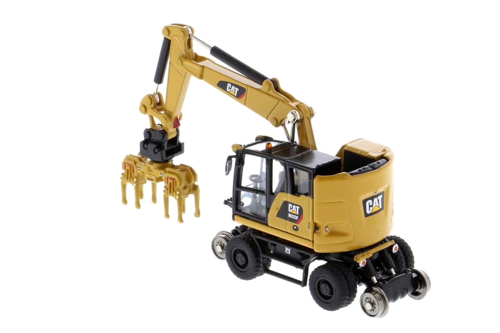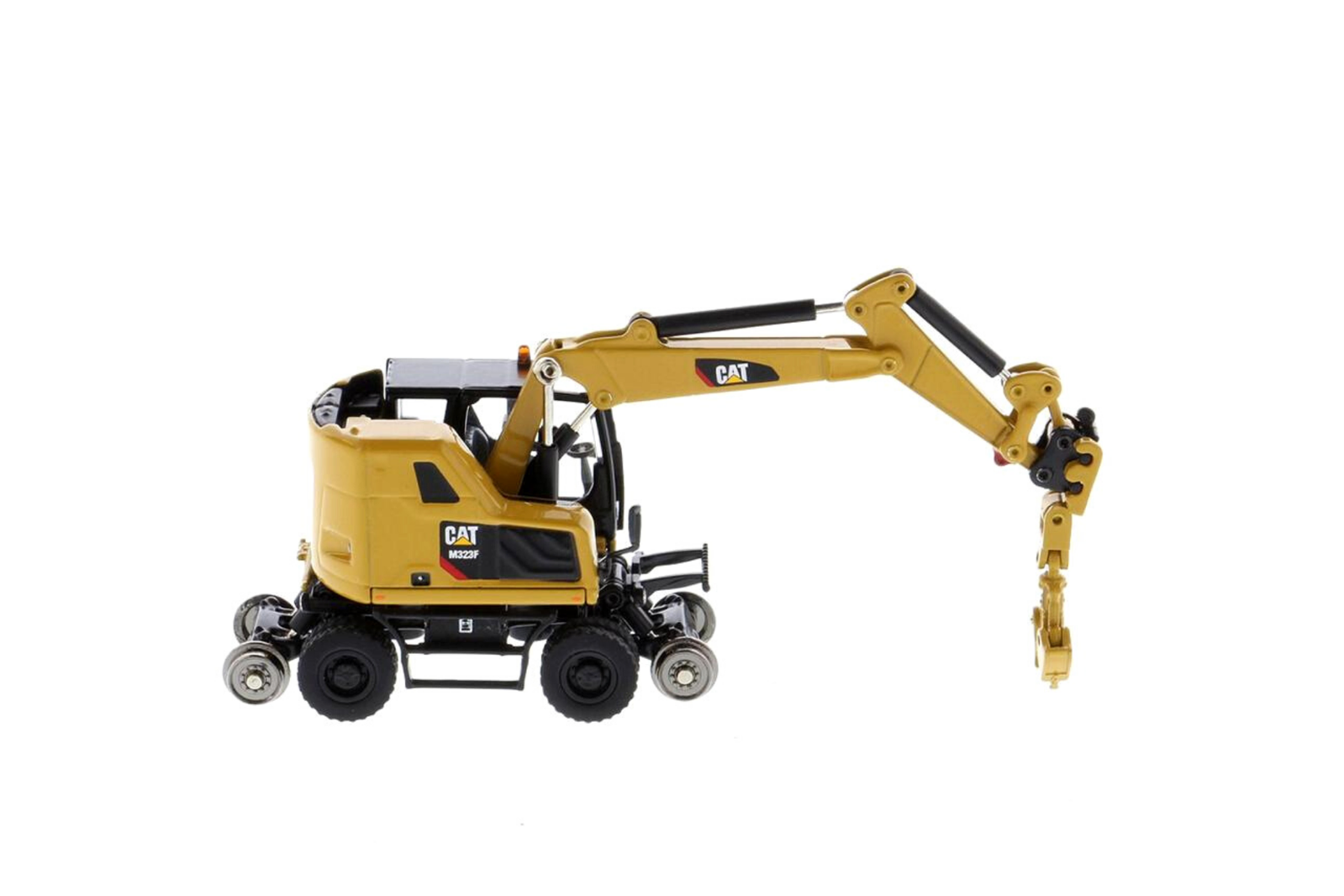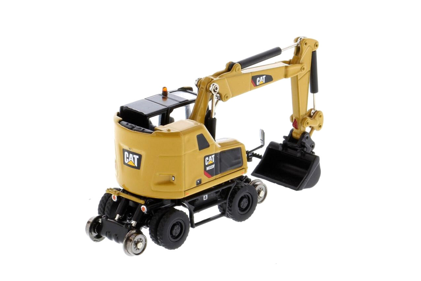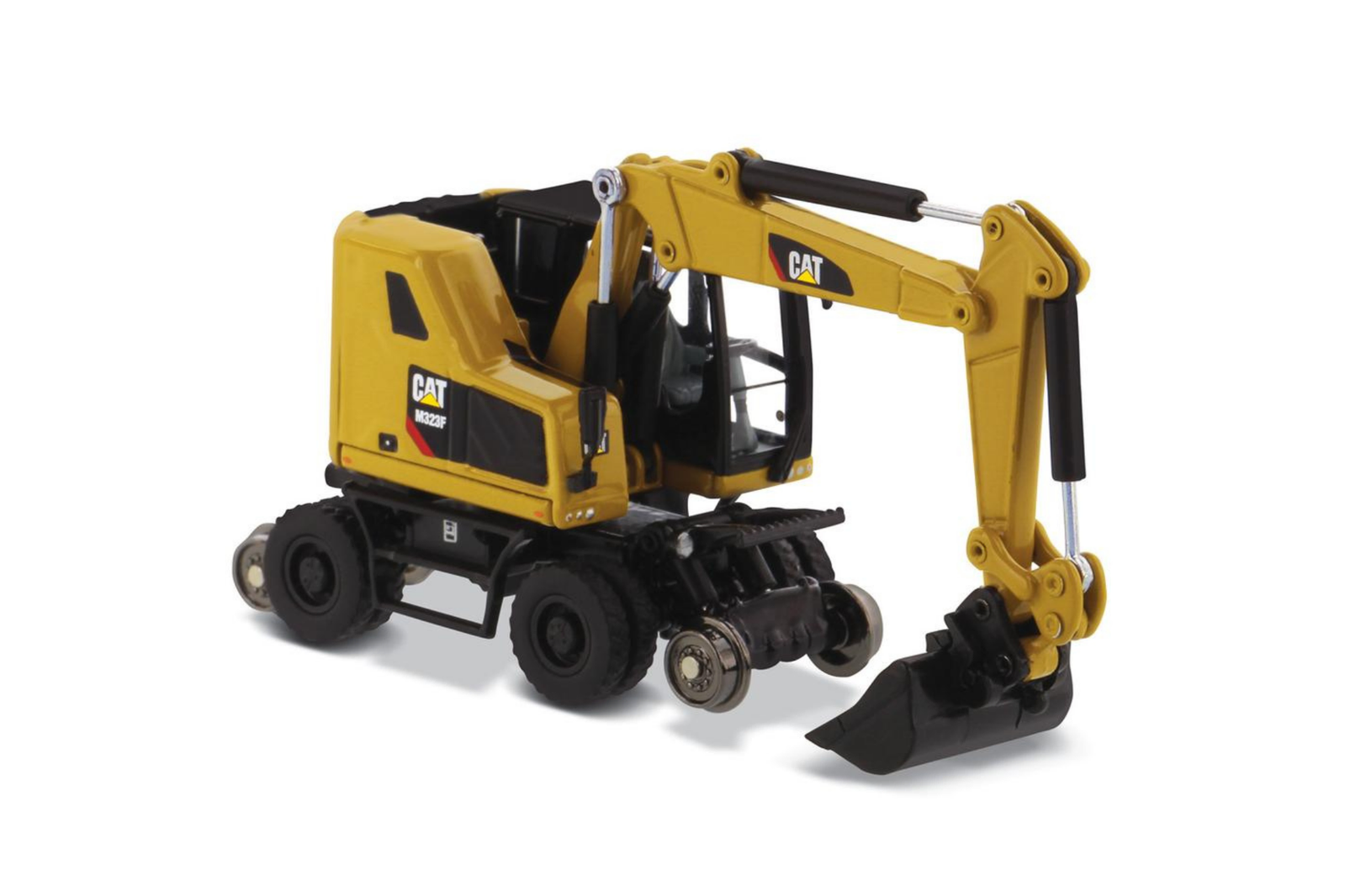 Diecast Masters 1/87 Caterpillar M323F Railroad Wheeled Excavator Safety Yellow Diecast Model