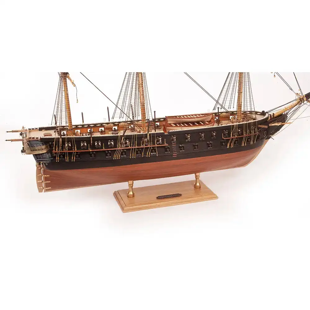 Solid oak base with two cast brass supports. Complete naval model base, so you can display your ship model.