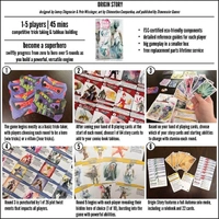 Origin Story is a 1-5 player competitive tableau-building, trick-taking game played over 5 rounds. Each round represents a chapter in your development and grants a new card to add to your player mat. Charge your cards and use their abilities to score more points than your opponents.