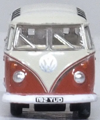 Oxford 1/148 Sealing Wax Red/Beige Grey VW T1 Samba Bus Diecast Model