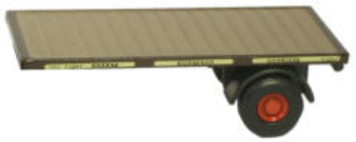 A twin pack of GWR trailers which fit with the Scarab and Mechanical Horse vehicles. Trailers were purchased in much greater quantities than the tractor units. The coupling gear/jockey wheel on the trailers drop down to allow the trailers to stand alone.