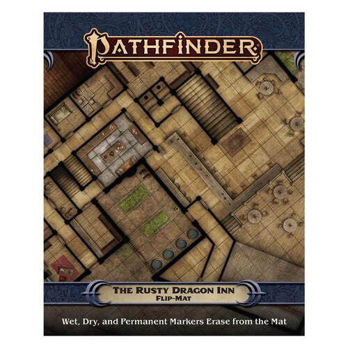 Get to the best parts of the game faster with Pathfinder Flip-Mat: The Rusty Dragon Inn, and be ready the next time the PCs stop by Sandpoint's oldest tavern and inn. It's time to break out the curried salmon and raspberry mead!