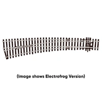 CURVED TURNOUT, LARGE RADIUS, LEFT HAND If you wish to mix wheel standards on your 00/H0 layout, this is the trackage to choose. Code 100 rail allows flange depths up to 1.6mm which means that both vintage and current stock will run happily together. The wide range of turnouts and crossings in this series includes every type, and the geometry of this range has been cleverly designed to make it easy to build convenient, complex and aesthetically pleasing formations using combinations of small, medium and large radius turnouts and crossings. Layout plans suggestions can be found in our publications ‘Track Plans for Layouts to Suit all Locations’ (Ref PM-202), ‘60 Plans for Small Railways’ (Ref no PB-3), and ‘Track Plans for Various Locations’ (Ref no PB-66). Technical Specification: Length: 258mm Radius: Outer: 1524mm Inner: 762mm