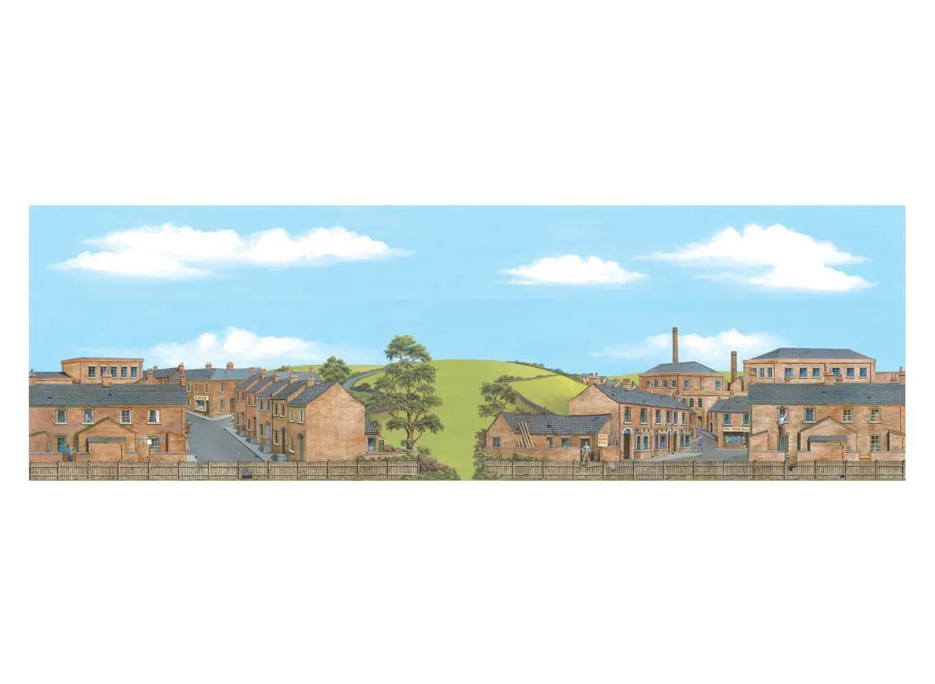 The range includes a variety of countryside plus town, village, city and dock scenes. In addition, sky sheets are available in the with or without clouds.