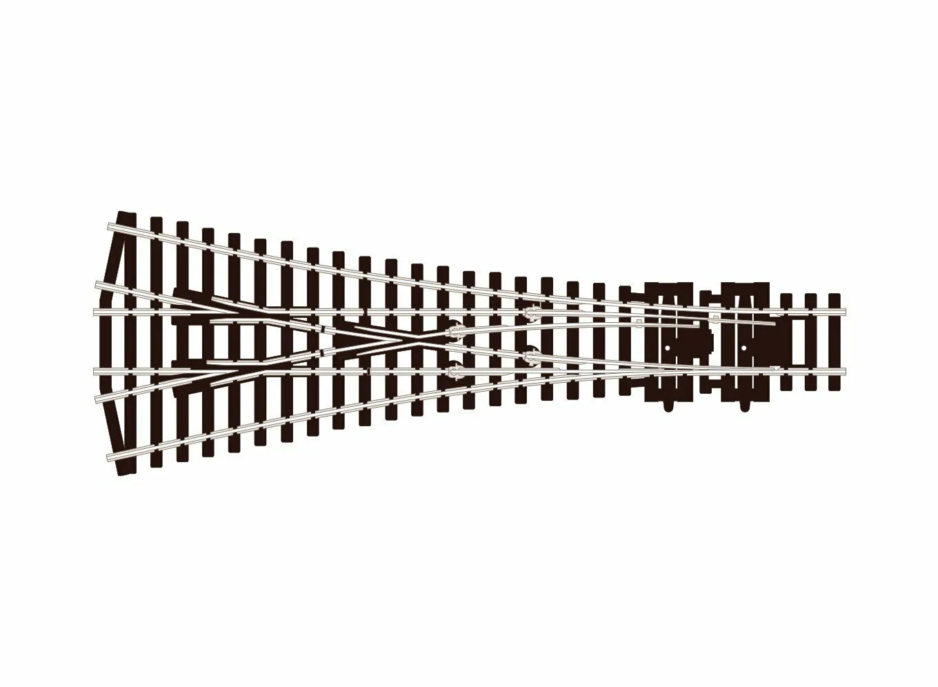 3 WAY TURNOUT, MEDIUM RADIUS The 3 way turnout is an ideal way to save space on station approaches, junctions etc. If you wish to mix wheel standards on your 00/H0 layout, this is the trackage to choose. Code 100 rail allows flange depths up to 1.6mm which means that both vintage and current stock will run happily together. The wide range of turnouts and crossings in this series includes every type, and the geometry of this range has been cleverly designed to make it easy to build convenient, complex and aesthetically pleasing formations using combinations of small, medium and large radius turnouts and crossings. Layout plans suggestions can be found in our publications ‘Track Plans for Layouts to Suit all Locations’ (Ref PM-202), ‘60 Plans for Small Railways’ (Ref no PB-3), and ‘Track Plans for Various Locations’ (Ref no PB-66). Technical Specification: Length: 220mm Frog Angle: 12 Degrees Radius: 610mm