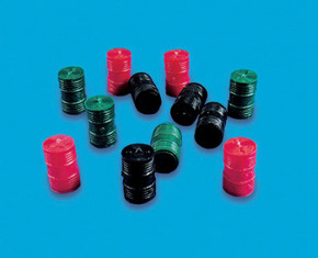 Pack contains 12 Oil Drums to use as a load or as detail for your goods yard or oil depot. See Ratio Ref. 529 Oil Depot