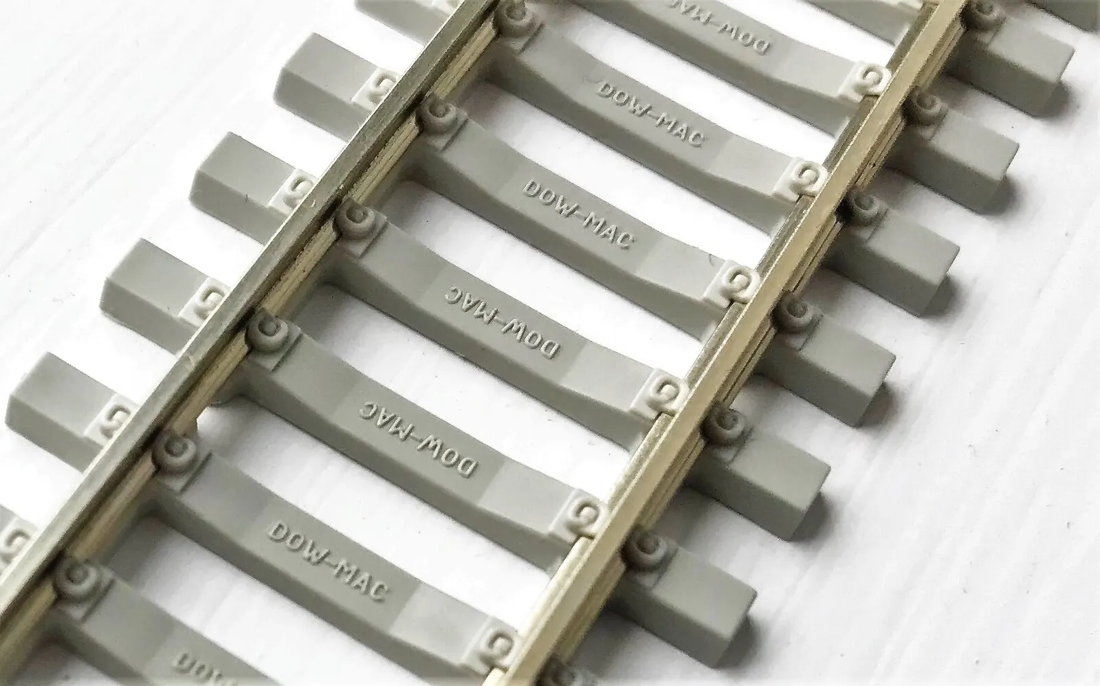 Concrete sleeper track has been in use on the railways of Britain since around 1940, usually combined with wooden sleeper turnouts and crossings, and this track is a faithful representation of this design.