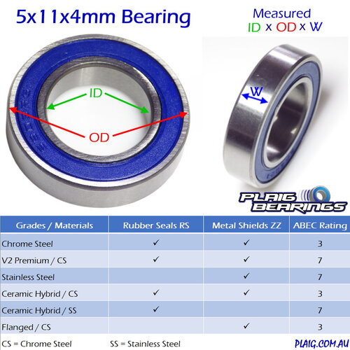 Plaig Bearings 5x11x4mm Bearing - Rubber Seals