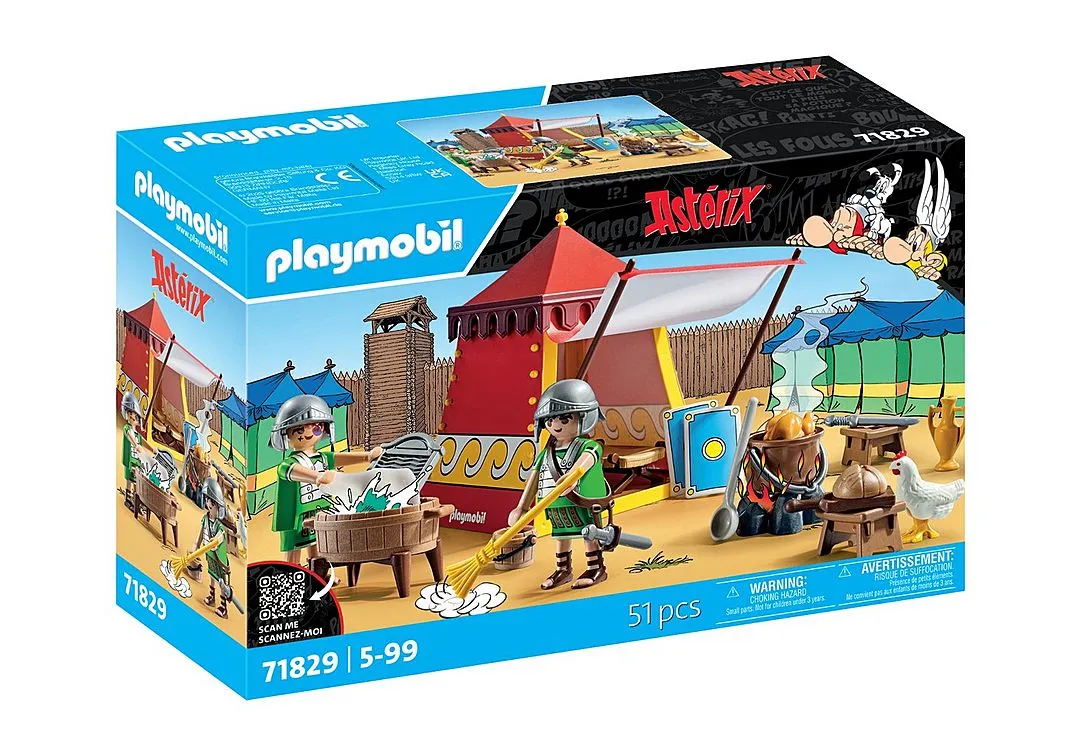 Step into the dynamic world of the PLAYMOBIL Asterix Legionnaire Tent where Roman legionnaires plan conquests and daily strategies in an action-packed camp. Inside the sturdy tent, helmets, shields, and spears are at the ready while beds and stools offer welcome comfort. A vibrant fireplace cooks feasts of bread and chicken, and practical accessories like a basin, towel, and washboard complete the scene for endless imaginative play.