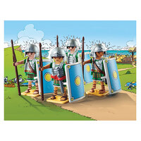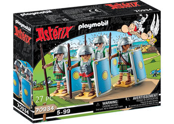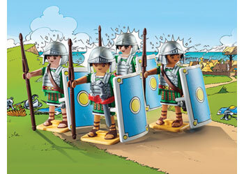 But once again, Asterix, Obelix and the villagers have no intention of surrendering without resistance. A quick sip of magic potion and off they go into battle. Life is not easy for the Roman legionaries who have to deal with these Gauls. The PLAYMOBIL set consists of four Romans with helmets, swords and shields. A stand plate is included for each figure for more stability. All figures have an alternating face that shows the faces before and after the battle.