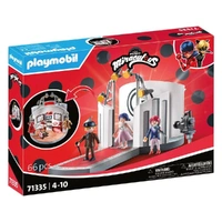SKU: PMB71335 | Brand: Playmobil | Product: Playmobil Miraculous: Fashion Show in Paris PLAYMOBIL Miraculous set depicting Gabriel's Fashion Show in Paris, featuring runway and backstage elements. Includes three figurines: Marinette Dupain-Cheng, Adrien Agreste, and Nadja. The construction comprises a round baseplate, detachable catwalk section, and dressing room wall with shelving for accessories and make-up tools. Marinette's wardrobe includes an elegant dress with coordinating mask and fans, trendy skirt, backpack, and assorted jewelry. Adrien comes equipped with a silicone coat, helmet, cane, and hat. The set enables creative role-playing scenarios centered on fashion design and runway presentation.