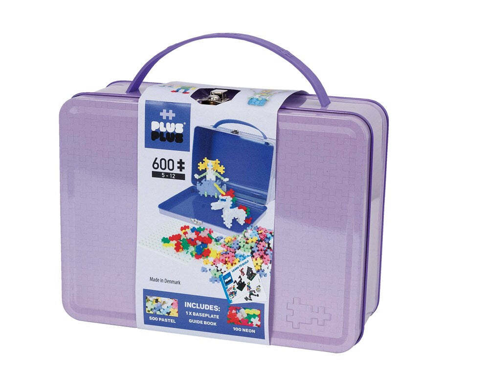 Plus-Plus is perfect for small hands and big ideas. The Plus-Plus Metal Suitcase contains everything you need to get starting with Plus-Plus along with a great tin storage box. A Guide Book gives step-by step instructions to build flat mosaics and 3D creations - animals, people, buildings and more! The set includes 500 Pastel color mix pieces, 100 Neon color mix pieces, 1 Baseplate and a Guide Book.