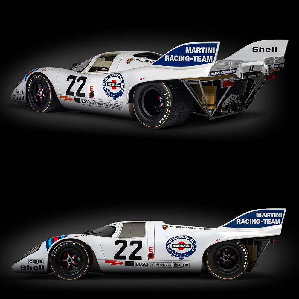 Experience automotive history with the Pocher Porsche 917KH – 1971 Le Mans Winner – MARTINI® Edition. A timeless symbol of speed, precision and racing heritage.