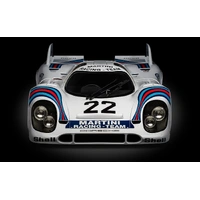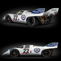 The Porsche 917KH – 1971 Le Mans Winner – MARTINI Edition, driven by Gijs Van Lennep and Helmut Marko, is one of the most celebrated cars in racing history. At the 1971 24 Hours of Le Mans, the duo piloted the 917KH to a stunning victory, marking Porsche’s first overall win at the iconic endurance race. Powered by a 4.9-litre 12-cylinder engine and clad in the iconic MARTINI Racing livery, the 917KH's aerodynamics and speed were pivotal in overcoming challenging conditions.