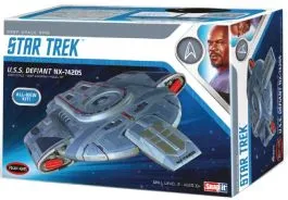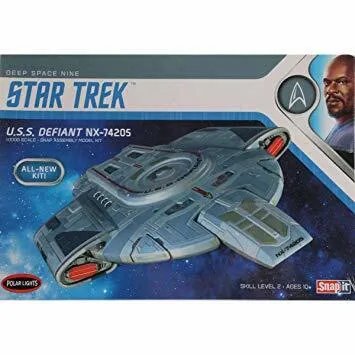 As the capital ship introduced into Star Trek: Deep Space Nine, the U.S.S. Defiant NX-74205 was a prototype vessel designed specifically to combat the Borg after the disastrous encounter at the battle of Wolf 359. The compact warship was assigned to the Federation space station, Deep Space 9, as a counter measure to imminent Dominion incursions. Polar Lights presents this all-new snap-assembly kit of the fan-favourite spacecraft. The ship is engineered for simple assembly, and has been researched for the utmost authenticity. Moulded in Light Gray Skill 2, Snap Assembly Water-slide decals include pennants & registries, multi-coloured panels and black or white window options Dome base with metal support rod and optional hole cap Clear parts make the model perfect for lighting (Lights not included) All new Star Trek style guide packaging 6 3⁄4” long 30 pieces