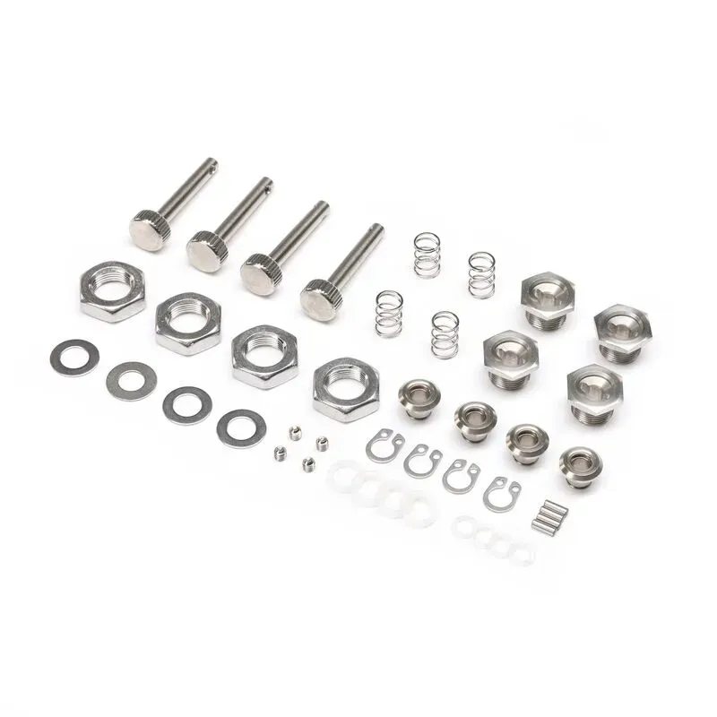 This Quick Canopy Latch Set includes (4) Thumb Screw Shaft, (4) Springs, (4) Top Washers, (4) Canopy O-Rings, (4) Internal O-Rings, (4) C Clips, (4) Pins, (4) Set Screws, (4) Threaded Inserts, and (4) Nuts.