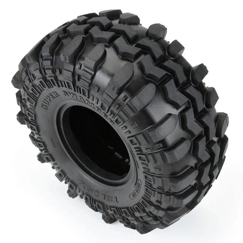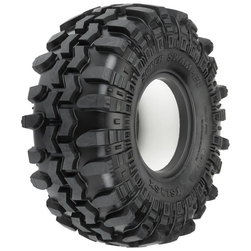 This is a pair of Interco® Super Swamper® TSL SX 2.9" Crawler Tires. Under official license from Interco® Tire Corporation, Pro-Line is proud to announce the gnarliest tire yet for the 1/6 SCX6™ rock crawler: the legendary Super Swamper® TSL SX! With "almost scale" not being acceptable and access to Interco's® design data, Pro-Line's engineering staff has reproduced the original Super Swamper® in a scale configuration matched by none. At a massive 7.15" tall by 3" wide, the Swamper® adds a whole new style to your rig, perfectly combining scale looks with the legendary G8 compound for unmatched rock crawling performance.