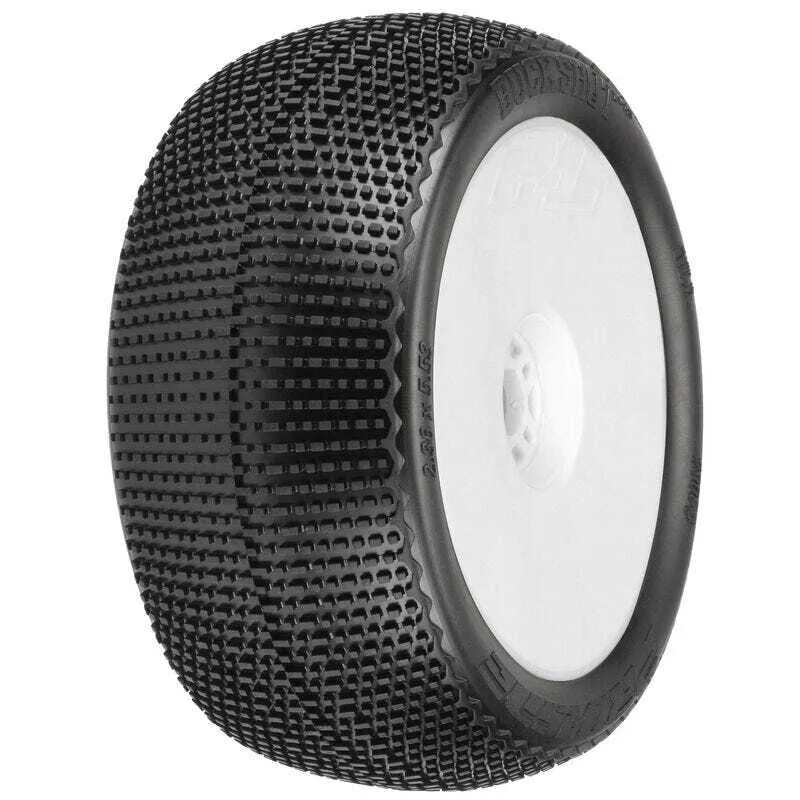 Pro-Line is making it easier than ever to use the Buck Shot VTR S-Material tires on your 1/8 Truggy by offering them pre-mounted on White Velocity VTR wheels!
