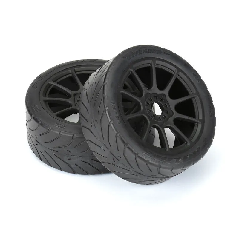 • Avenger HP Street BELTED Tires Mounted on Black Mach 10 Wheels (2 pcs)