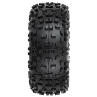 The Badlands 2.8" now comes conveniently Pre-Mounted on the next generation 2.8" wheel design from Pro-Line, the Raid 2.8" Removable Hex Wheel! Imagine being able to easily change the offset of your wheel to fit different applications by simply changing out the hex! You can go quickly and easily from the included 12mm narrow offset (2wd Stampede®/Rustler® Rear) to the included 12mm wide offset hexes (2wd Stampede®/Rustler® Front and 4x4 Stampede®/Rustler® Front and Rear) or 14mm wheel hexes (Granite™ 3S, Big Rock™ 3S).