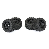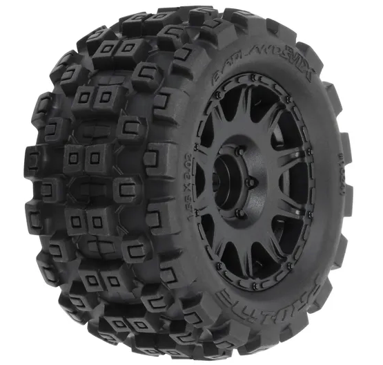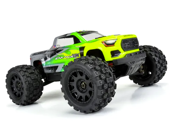 This is a set of pre-mounted Badlands MX Tires on Raid Wheels for the Granite™ GROM. Pro-Line’s most popular Monster Truck Bashing tire is now available in mini size for the 1/18 ARRMA® Granite™ GROM! The Badlands MX Line of tires are known for having Motocross-inspired tread with a big, bold, knobby tread that matches modern MX tire design.