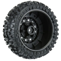 This is a pair of pre-mounted Badlands All-Terrain Short Course Tires. Are you ready to chew up the dirt and spit it out in a huge spray behind your SC truck? If so, then the Badlands SC tire is exactly the tire that you have been waiting for. The Badlands SC tire offers motocross style tread with huge, long-lasting lugs giving it the looks and performance that have won over bashers all across the globe. The Badlands tread design is made for the die-hard motocrosser in you. Its oversized grass and dirt shredding lugs offer you the ultimate in performance under all-terrain type conditions. The lugs are designed to ensure longevity while spitting up the surface below. Made from soft yet durable M2 compound, the Badlands tire is poised for battle and ready to take your Short Course Truck to the next level of bashing heaven. The Badlands SC tires are mounted to a pair of Raid SC Removable Hex Wheels. We take the guesswork out of your glue job by doing the mounting for you so you can spend your time having fun! Pro-Line is proud to introduce a true next-generation Short Course wheel design – the Raid 2.2"/3.0" Removable Hex Wheel for all Short Course Tires! Imagine being able to easily change the offset of your wheel to fit different applications by simply changing out the hex! Now you can with the new 6x30 Removable Hex system from Pro-Line. The wheels include a pair of 12mm Slash® 4x4 Front/Rear (Slash® 2wd Rear) hexes and a pair of 12mm Slash® 2wd Front hexes that fit the most popular trucks. Optional 14mm, 17mm and ProTrac™ offset 12mm hexes (PRO635500) are available separately to fit your exact application. If your wheel hex ever gets damaged, it can easily be replaced without needing to replace your glued tires (PRO635400 Replacement Slash® Hexes)! These new Raid SC wheels accomplish all of this and more by using Pro-Line's unique 6x30 interlocking hex design that is secured to the wheel by 6 M3 screws that are spaced 30mm across. The built-in adjustability and ease of use make this a new must-have wheel for Short Course Trucks everywhere! Get your new Raid SC pre-mounted tires today! Please tires & wheels are sold in pairs, unless otherwise noted PRO118210 | Badlands SC 2.2"/3.0" All Terrain Tires Mounted on Raid Black 6x30 Removable Hex Wheels (2) for Slash® 2wd & Slash® 4x4 Front or Rear Slash® is a registered trademark of Traxxas® L.P. Features