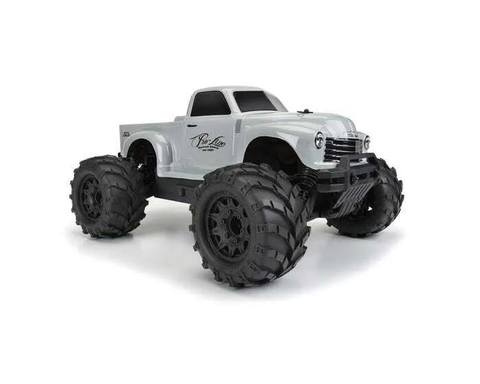 This is the Early 50's Chevy® Tough-Color (Stone Gray) Body for the Stampede® and Granite™. Pro-Line welcomes you back to the past of automobiles with the release of the Early 50's Chevy® made from the new Tough-Color Stone Gray polycarbonate. Pro-Line's classic car enthusiasts captured the overall essence of the Early 50's Chevy® and made it available in 1:10 scale format for the Stampede® and Granite™. Complete with detailed grill, headlights, body molding trim, and that overall distinct Early 50's look, all classic truck enthusiasts will come to appreciate the overall styling the 50's have to offer. The Tough-Color polycarbonate is made from gray material, so you never have to worry about paint peeling or chipping off. Realistic window stickers are also included!