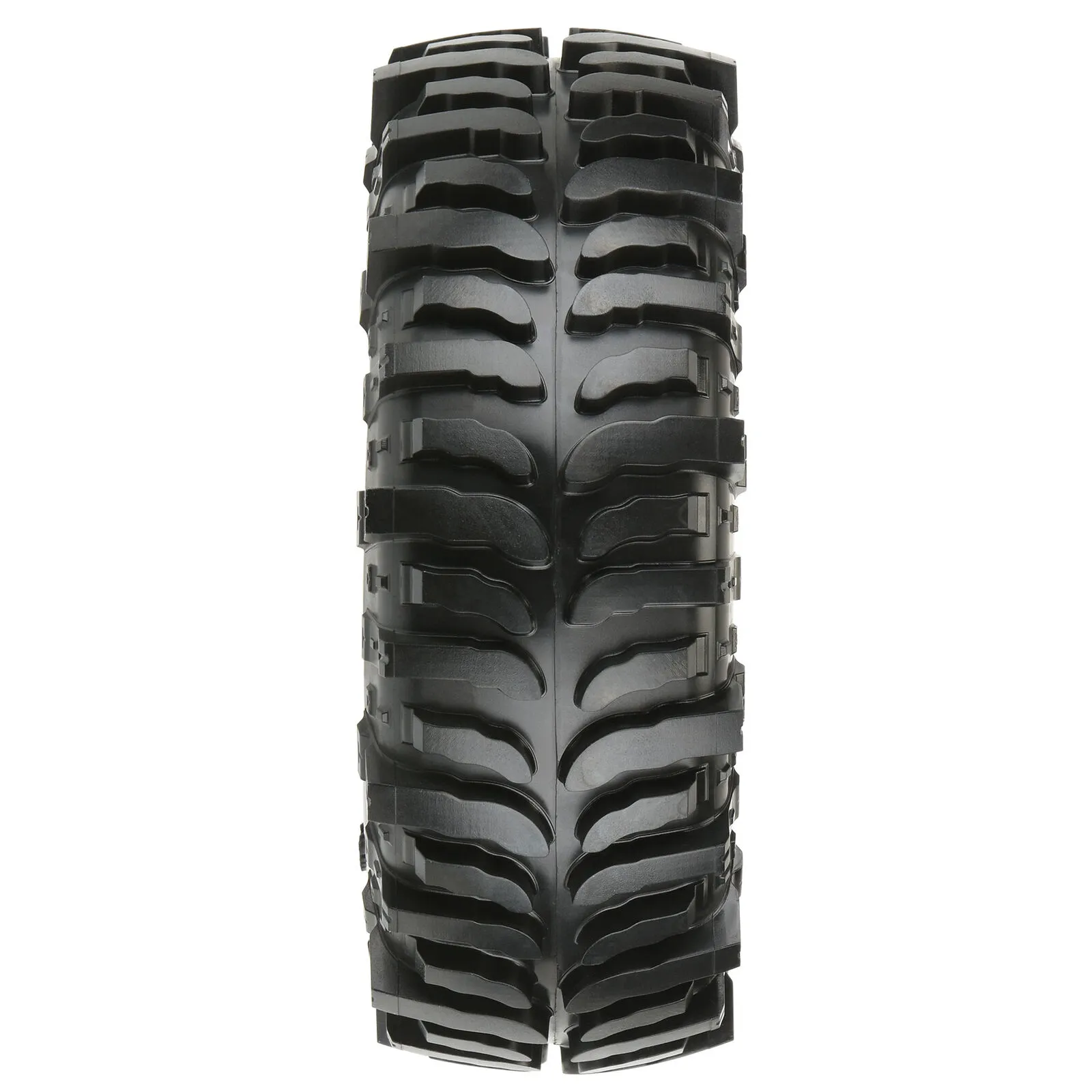 This is a pair of pre-mounted IntercoÂŽ BoggerÂŽ 1.9" Tires. These massive 5.4" tall x 1.91" wide tires are perfect for guys looking to do some Mud Bogging with their rigs or for recreating a beloved full size truck in perfect scale detail. Pro-Line's officially licensed IntercoÂŽ BoggerÂŽ tires feature a directional tread pattern with the patented Interco TSL (three stage lug) design just like the full-size tires. The BoggerÂŽ tires are aggressive in stock form and are also extremely versatile and easily modified for even more mud flinging performance. They come in Pro-Line's legendary G8 compound, so you know they will perform beyond expectations right out of the package.