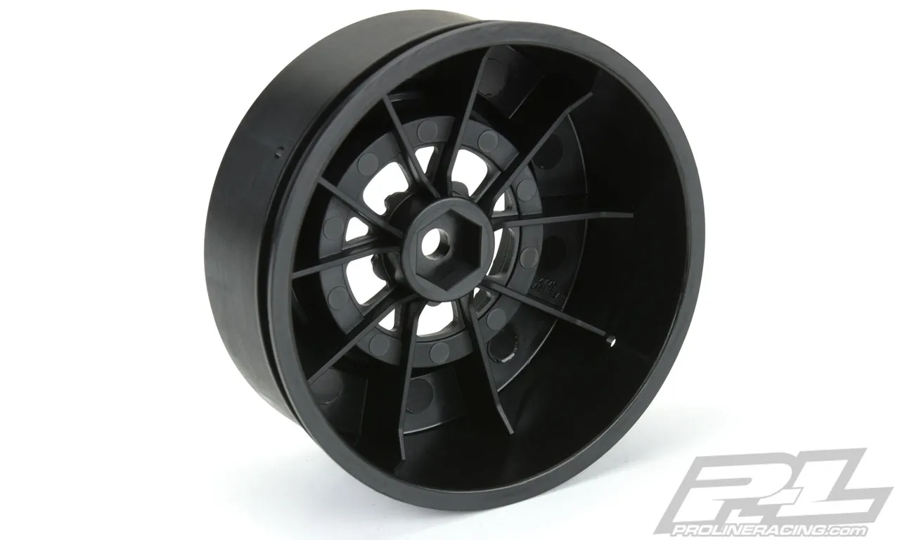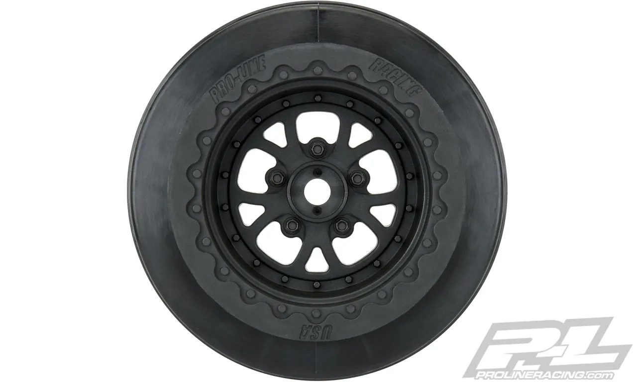 This is a pair of Pomona Drag Spec SC Rear Wheels. Do you need high-performance and perfectly styled drag wheels for your no-prep SC drag car? Pro-Line has you covered with the all-new Pomona Drag Spec 2.2"/3.0" Black Rear Wheels! The Pomona wheels were specifically made for no-prep Drag racing and are a perfect fit with Pro-Line's Hoosier Drag Slick SC Tires! The Pomona wheels are strong and lightweight 12mm hex wheels making them the ideal choice for performance drag racing. The wheel spoke design mimics what you would find at the Pomona Drag Strip on any given race weekend and will complete the look of your build. The Pomona wheel offset is ideal for Losi® 22S™ No Prep Drag Car, 2wd Slash® trucks converted to no-prep Drag Racing cars and AE DR10, which has exploded in popularity. The Pomona Drag Spec wheel and every other wheel that Pro-Line makes is proudly Made in the USA. Launch your no-prep Dragster to the next level with the Pro-Line Pomona Drag Spec Wheels today! Please tires & wheels are sold in pairs, unless otherwise noted PRO277603 | Pomona Drag Spec 2.2"/3.0" Black Wheels (2) for Losi® 22S™ No Prep Drag Car, Slash® 2wd and AE DR10 Rear & Slash® 4x4 Front or Rear Features
