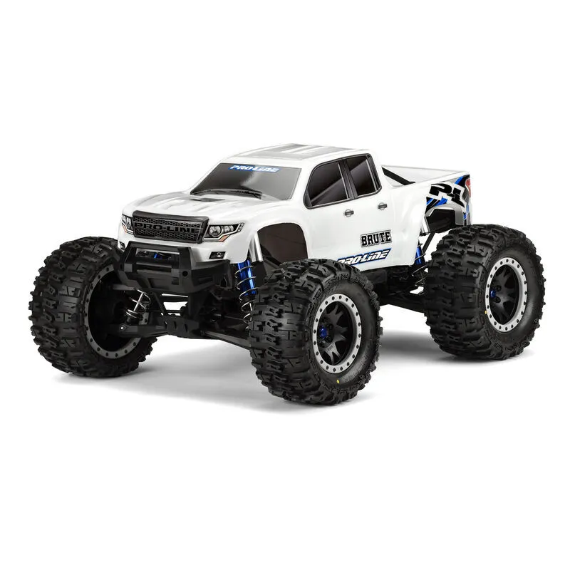 This is a Pre-Cut Brute Bash Armor White Body for X-MAXX®. Pro-Line has developed the Ultimate Bash body for your X-MAXX® – the pre-cut Brute body featuring Pro-Line’s all-new Bash Armor material! If you are like us, you want a dependable high strength body you can count on for your X-MAXX®. The Brute Bash Armor White Body has been developed from the ground up to be the toughest body Pro-Line has ever produced. The all-new Bash Armor material is twice as thick as regular X-MAXX® bodies and is ultra-flexible to prevent cracking and shattering. Unlike clear polycarbonate, the Bash Armor material is White and is not paintable, so Pro-Line includes detailed decal sheets that feature fender and window graphics to complete the look. The Brute is Pro-Line's take on a modern truck and features a bold grill with eye-pleasing body lines sure to turn heads at your local bash spot. The Brute body has been designed to work with the stock X-MAXX® body mount and cage system which is sold separately and is required for proper mounting. If you are ready to battle your buddies, then get the strongest body possible for your X-MAXX® - the Pre-Cut Brute body with Bash Armor material technology!