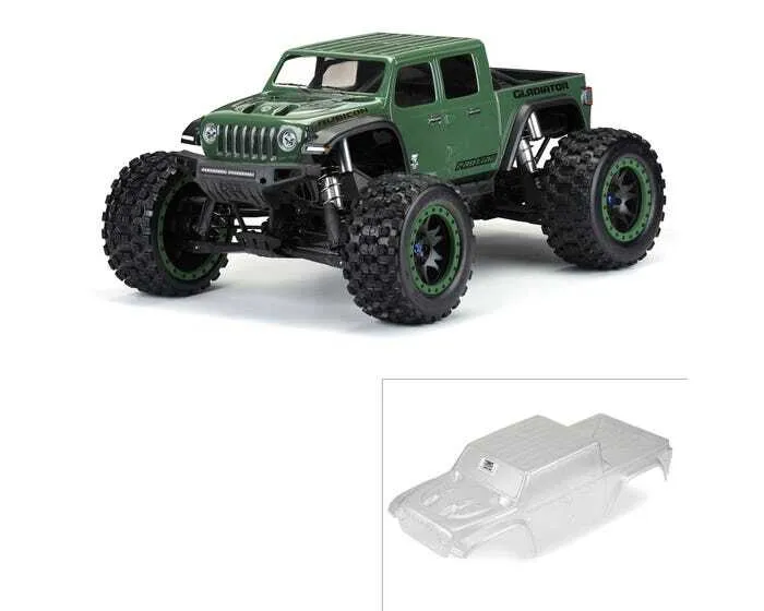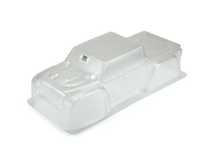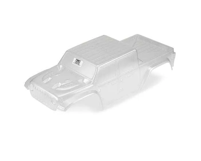 This is a Pro-Line Jeep® Gladiator Rubicon Clear Body for the X-MAXX®. Calling all Jeep® fans! Pro-Line is proud to release the all-new Jeep® Gladiator truck body for your X-MAXX®! The Gladiator combines the iconic and unmistakable Jeep® body styling with the utility and ruggedness of a truck that tells everyone that you are ready for adventure. The Pro-Line Jeep® Gladiator body is pre-cut specifically for your X-MAXX® and is designed to work with the stock cage and body mount system.