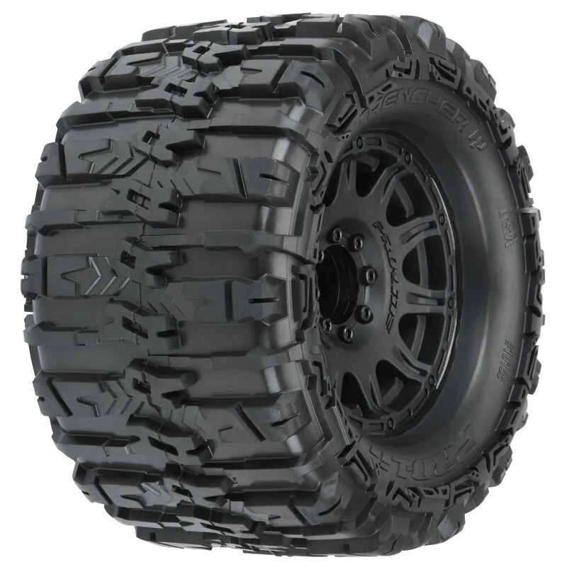 - M3 Wheel Hex Hardware Included -Line is proud to introduce the History-making Trencher HP 3.8" BELTED All Terrain Truck Tires! Pro-Line has developed the technology to mold a High-Performance herringbone weave pattern Belt inside of the relentless, tall and grippy tread of the new Trencher HP. These are not your average belted tires! Made for All Terrain bashing, the Trencher HP 3.8" tires will not balloon or expand during use and will still provide the incredible grip that you expect from Pro-Line tires due to the soft M2 compound. Just like all Pro-Line's tires, they are proudly Made in the USA! Like the original Trencher X 3.8" tire, the next generation Trencher HP 3.8" is destined to become the ultimate, go-to Bash tire for your truck! Please note that the Trencher HP tires are not meant to be extreme speed run tires and have achieved up to 75 mph or about 3,500 RPM under ideal conditions in testing. Over revving your Trencher HP tires could result in breaking the internal belt, which will NOT be covered under warranty. This can be caused by "diffing out" your tires or holding the throttle open while one, two or three of your tires are stopped, which substantially increases the RPM sent to the free-spinning tire or tires. The new Belted Trencher HP 3.8" tires come Pre-Mounted on the next generation 3.8" wheel design from Pro-Line, the Raid 3.8" Removable Hex Wheel! Imagine being able to replace a damaged wheel hex without needing to replace your glued tires! These new Raid 3.8" wheels make this possible by using a unique 8x32 interlocking hex design that is secured to the wheel by 8 M3 screws that are spaced 32mm across. The hexes are included and are also available separately (PRO634500). The built-in adjustability and ease of use make this a new must-have wheel for bashers everywhere! Be the first to own the latest and greatest technology from Pro-Line, get the new Trencher HP 3.8" Belted tires now! MAXX®, SUMMIT®, and E-REVO® are registered trademarks of Traxxas® L.P.