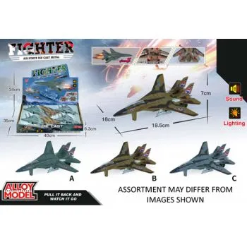 Pull Back Diecast Fighter Jets Lights and Sounds (Assorted)