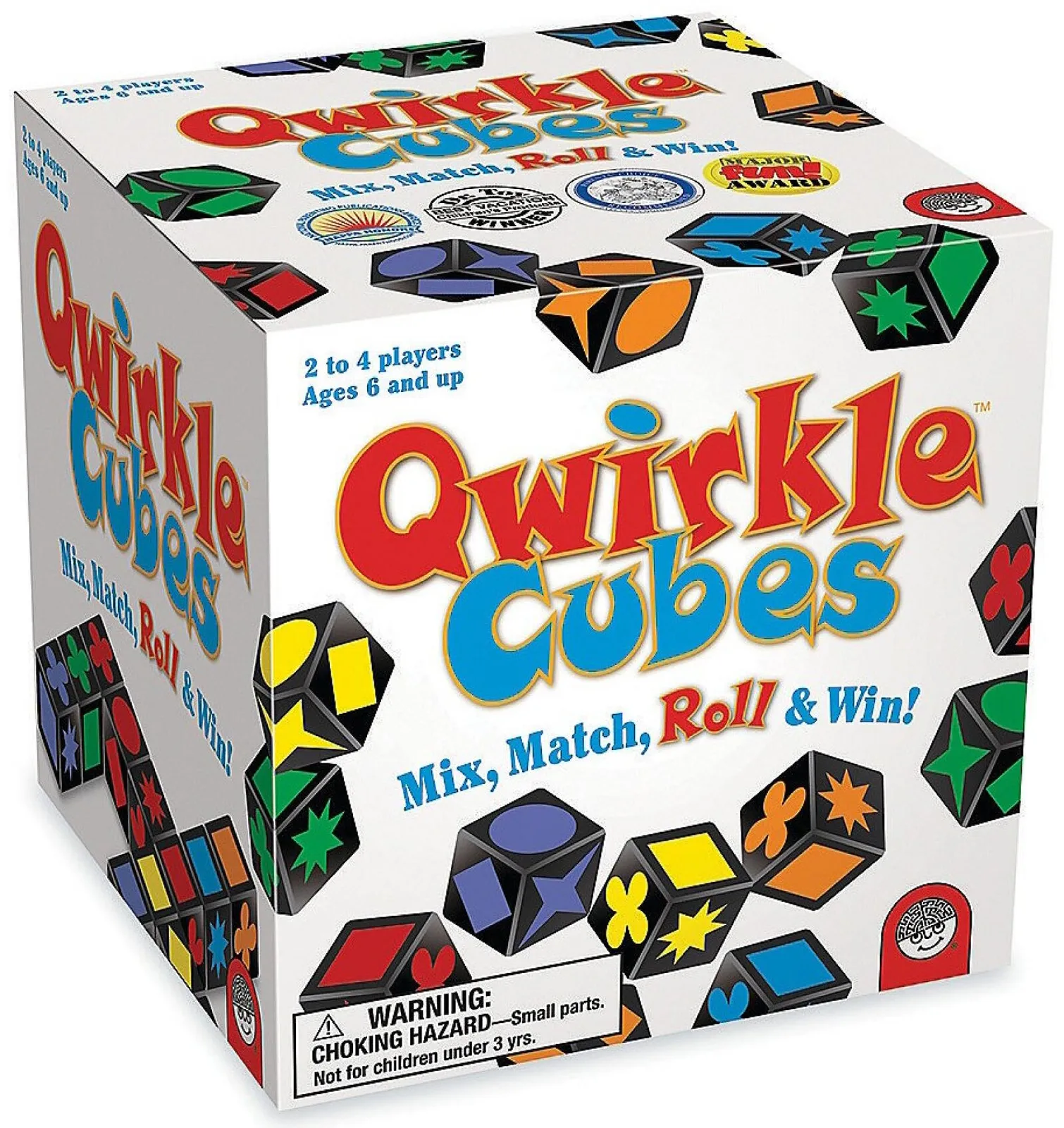 Qwirkle Cubes plays much like our original Qwirkle game--create rows and columns of matching colors or shapes to score the most points--but adds to the strategy because you can roll your cubes for more chances to play the exact shapes you want! Also, because everyone plays open-handed, you can analyze your opponents' future moves.