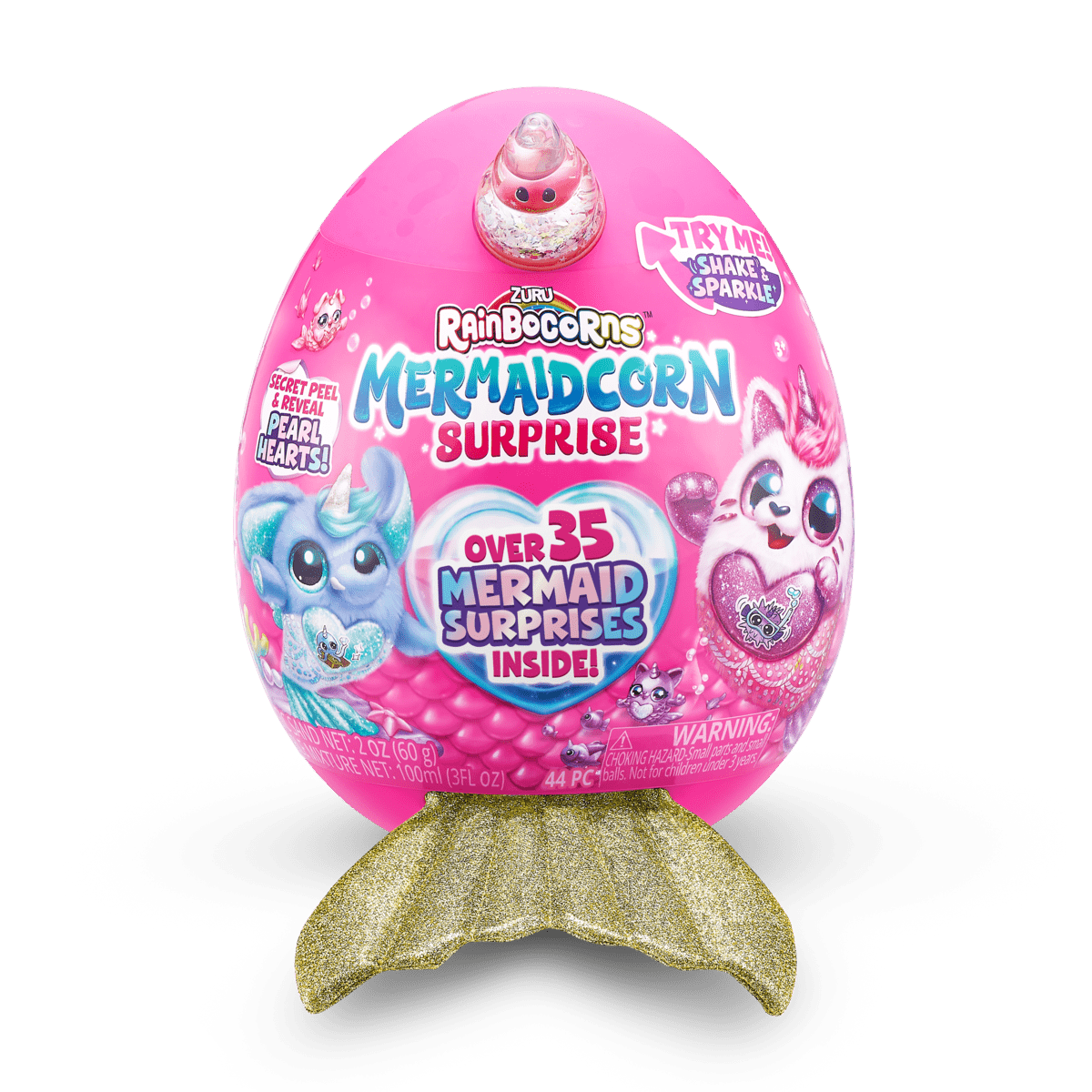 These Mermaidcorns are ready to make a splash in Rainboville! Hatch open your egg to unbox your new fin-tastic friend and over 35 surprises! These cuddly plush come with a shiny mermaid tail and a boo-boocorn hidden inside a their water globe horn!.