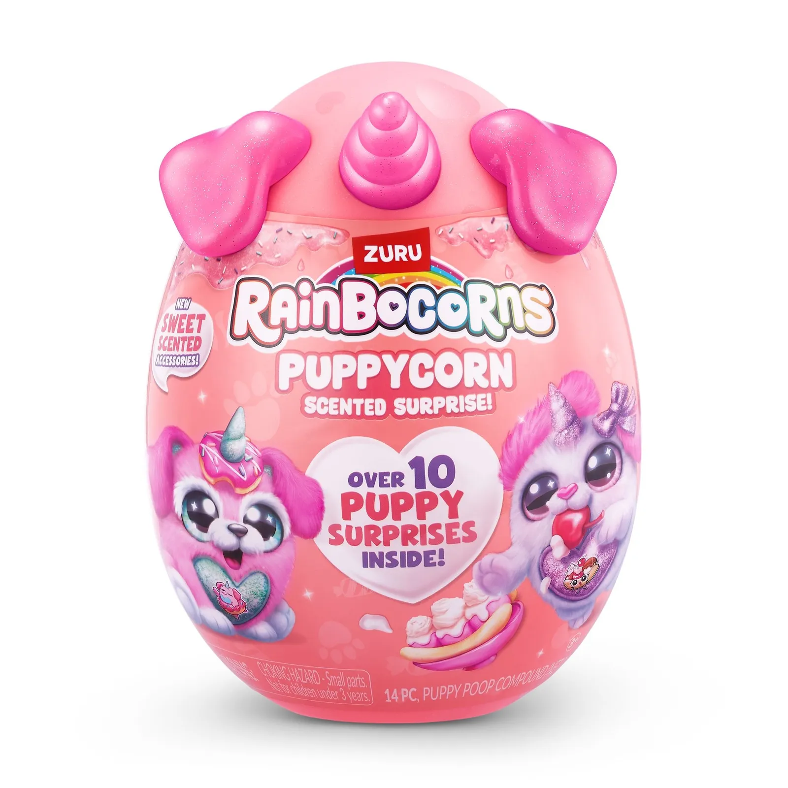10 Surprises to discover: Rainbocorns Puppycorn Scent Surprise is packed with over 10 super sweet surprises! Collect them all: There are 7 paw-fect puppies to collect, each with their own scented accessory! Scented stickers and accessory: Each Puppycorn comes with a sweet scented accessory and stickers! Which super sweet scent will you discover? Puppy Poop compound: Find your Puppycorn poop compound inside your Rainbocorns egg! Peel and reveal: Peel the heart off your Rainbocorn to reveal what they love!.