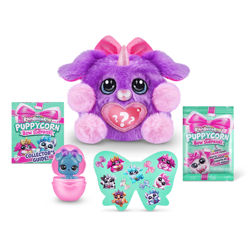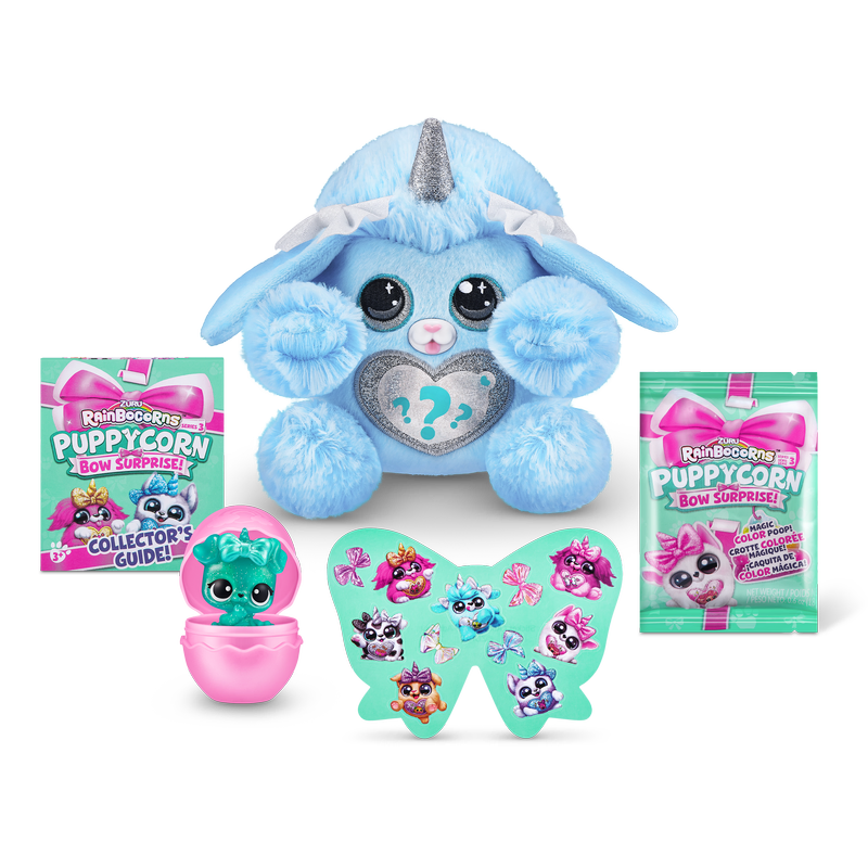Includes: 1 x Puppycorn Egg, 1 x Puppycorn Plush, 1 x Peel and Reveal heart, 1 x Puppy Bow, 1 x Boo-Boocorn Egg, 1 x Boo-Boocorn Pup, 1 x Rainbocorn Jelly Slime Poop, 1 x Puppycorn Sticker Pack, 1 x Collectors Guide Please note: This item is part of an assortment and multiple styles are pictured. Styles are selected at random at time of dispatch. If you have a preference, please add a comment in the notes section of your order and we will try our best to fulfil this based on availability. Each item is sold separately.