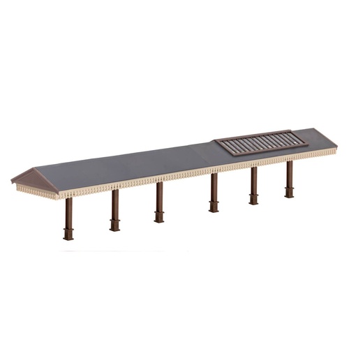 A useful cover for passengers awaiting their train. Several kits can be combined to protect a long platform, they can also be used side by side. Glue and paints required to complete model. Footprint: 270mm x 52mm