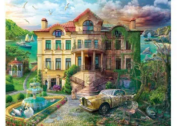 What is beautiful and new today, time and neglect will strip away in our Cove Manor Echoes puzzle! Cove Manor was once a beautiful retreat, but time has ravaged it almost beyond recognition! On the righthand side of this 2000 piece jigsaw puzzle, we glimpse the manor house in its darkest days. Its once-grand facade was cloaked in layers of neglect and decay. Crumbling brickwork and broken windows stood as silent witnesses to the passage of time. Nature's grasp tightened around the manor, as ivy crept up its weathered walls, seemingly reclaiming its territory. But as we shift our gaze to the left-hand side of the puzzle, we see the present day, a vision of resplendence unfolds before us. The manor stands proud and revitalized, bathed in renewed glory. Meticulous restoration efforts have breathed life back into every detail, capturing the essence of its bygone splendour. Size: 98 x 75cm Ages: Adults ( RB17464-5 )