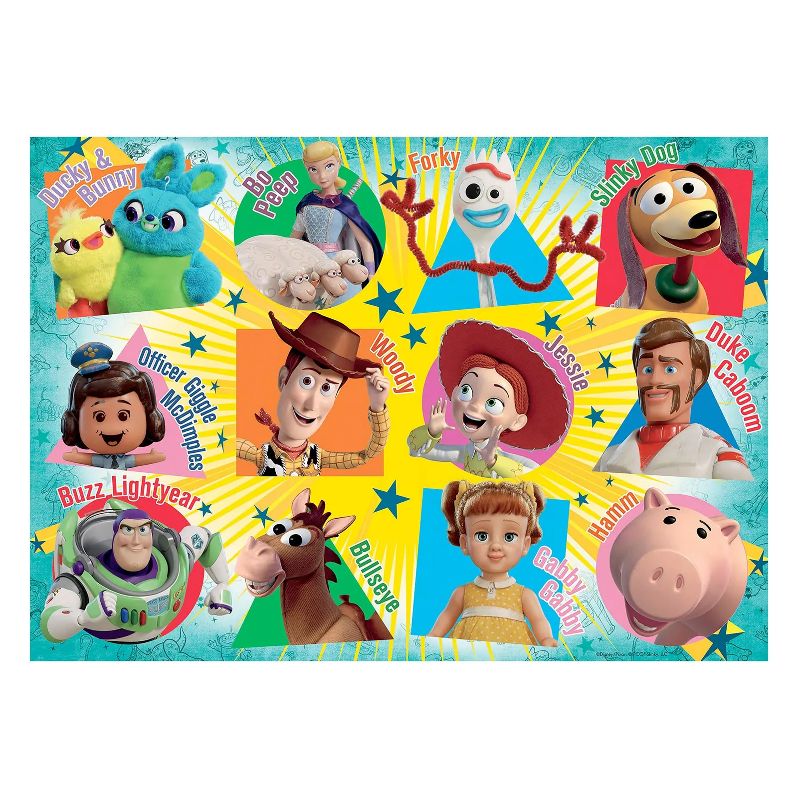 Discover the stars of Toy Story 4 with this bright and colourful giant floor puzzle!