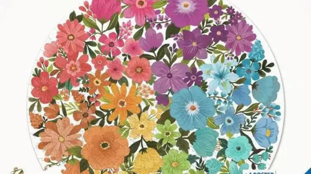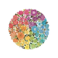 Soothe your soul piecing together a radiant rainbow of “Flowers” in this blooming bouquet! Our exclusive illustration captures these delicate rays of natural beauty in a kaleidoscope of colors for hours of relaxing, stress-reducing fun. Worked in the round, this circle-shaped puzzle cuts the corners but not the exceptional puzzle experience you’ve come to rely on from Ravensburger. Makes a great gift for your favorite gardener or anyone up for a unique puzzle challenge!