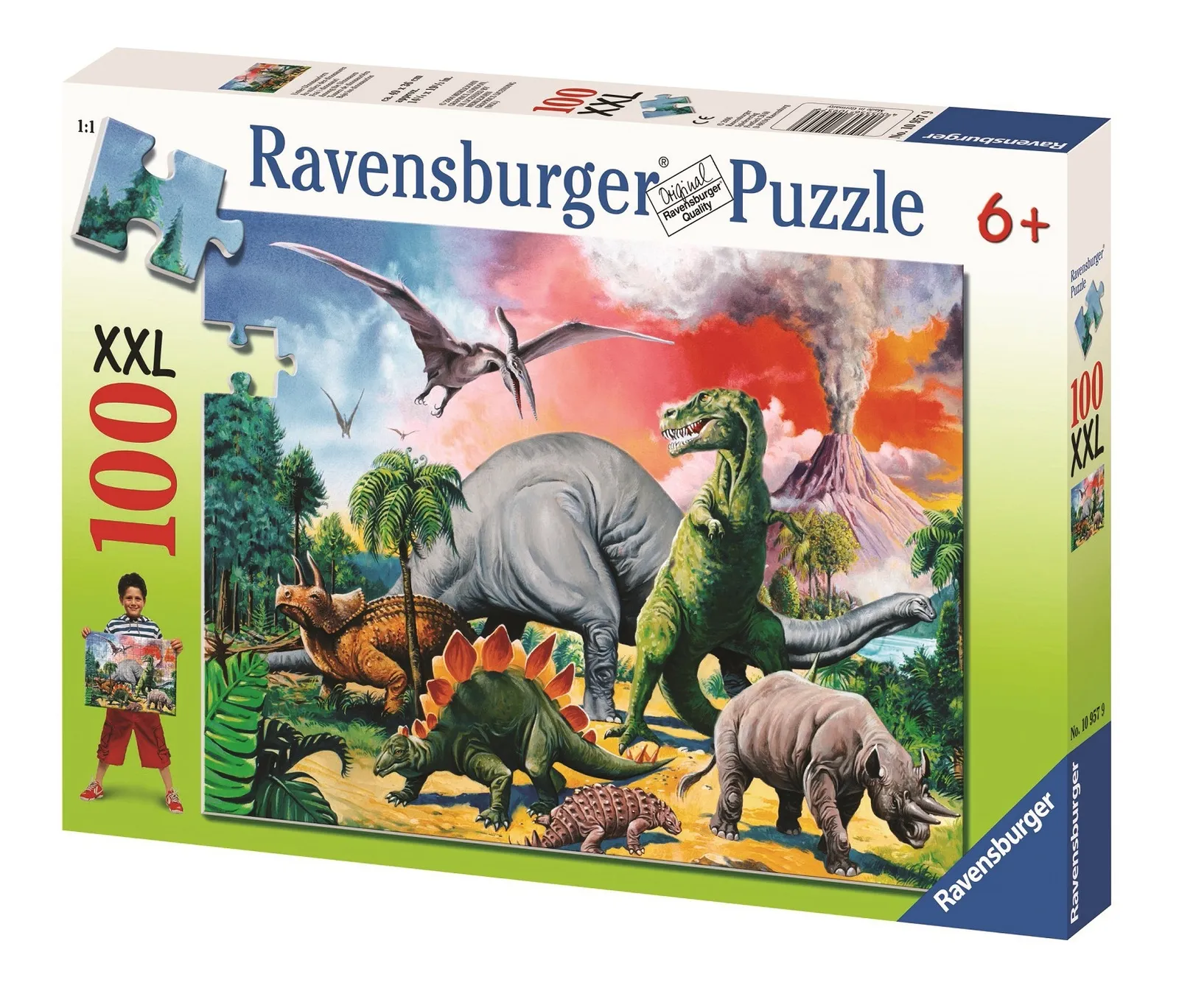 Realistic scenes from ancient times include volcanos and even Pterosaurs, the famous flying dinosaur. Look for more 100pc Puzzles from our Dinosaurs Collection.